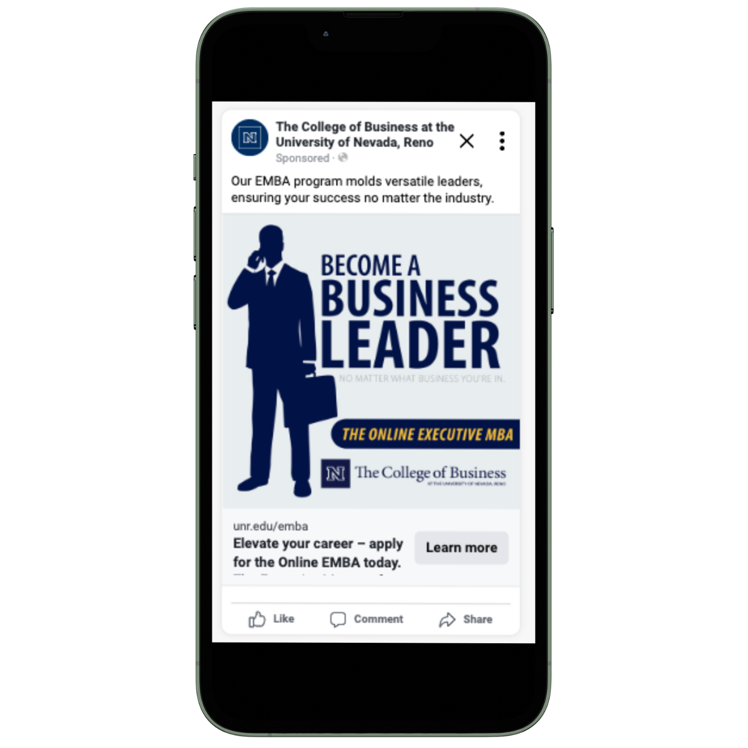 Project Goal: Develop a targeted Meta (Facebook & Instagram) advertisement campaign to increase awareness and qualified leads for the UNR EMBA program.