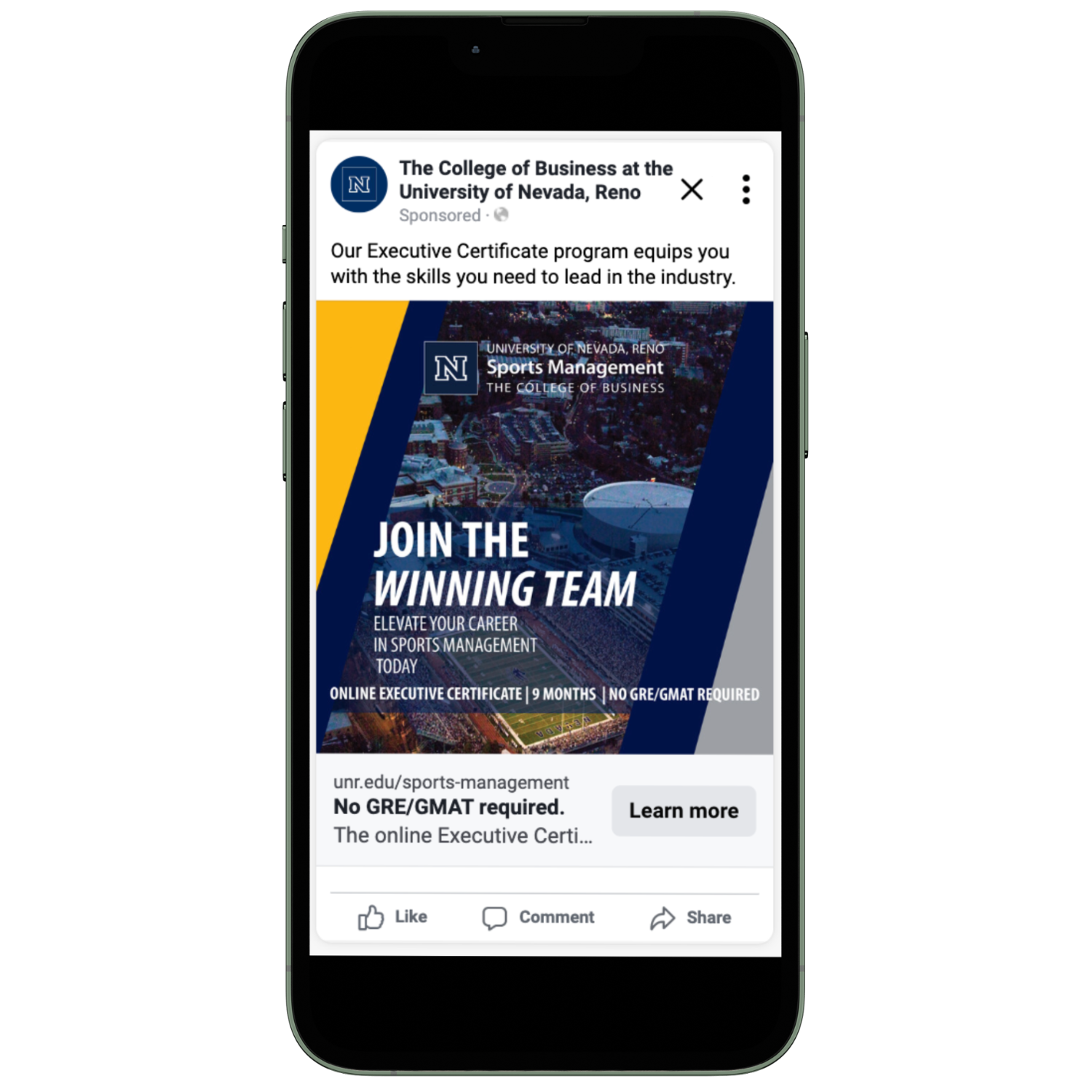 Project Goal: Develop a multi-platform ad campaign to generate awareness and qualified leads for the UNR Sports Management Executive Certificate Program.